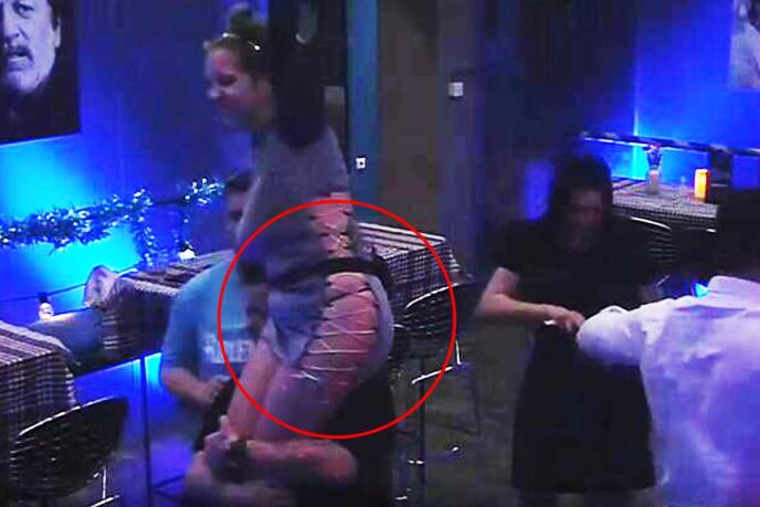 Kristina nije marila ni za šta sem da se lepo provede, pa se tako popela Ivanu Neškoviću na ramena, te su svi primetili vezice na njenoj haljini.