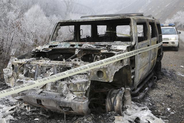 KOSOVSKA MITROVICA - Luskuzno terensko vozilo "hamer" subotičkih registarskih tablica, izgorelo je prošle noći na magistralnom putu Kosovska Mitrovica-Leposavić, kod mesta Savina stena.