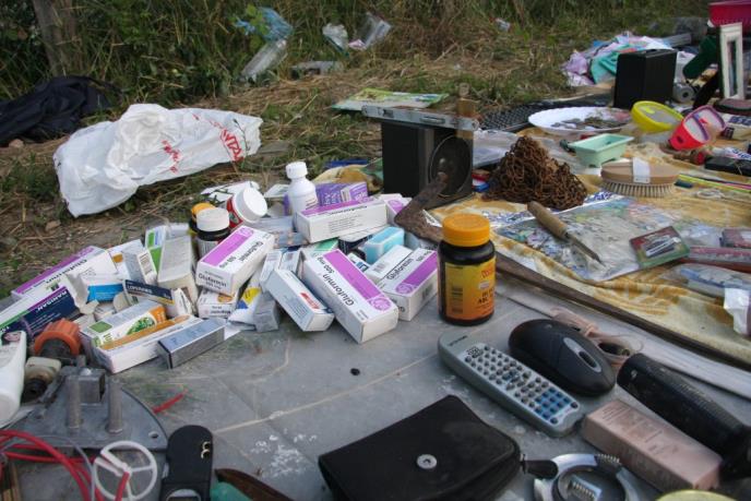 Na improvizovanoj tezgi, dvojica Beograđana su juče nudili na prodaju desetine kutija lekova u originalnim pakovanjima, "među kojima i one sa liste opojnih droga: bromazepam, lorazepam i bensedin".