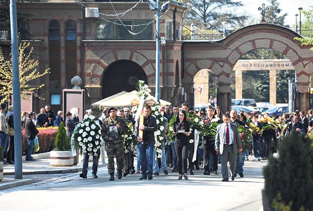 Na pomenu su bili i Stojan Novaković Cope, Arkanov prijatelj i bivši fudbalski menadžer, kao i košarkaški menadžer Goran Ristanović, koji su ranjeni prilikom ubistva Rakonjca 2. aprila u kafiću „Mariki“ u Zvečanskoj ulici. Novaković se u hodu pomagao štakama, dok se Ristanović skoro sasvim oporavio. - Prošli smo zajedno tolika ratišta i dočekali da ga ubiju na kućnom pragu. To je strašno - rekao je saborac Radeta Rakonjca.