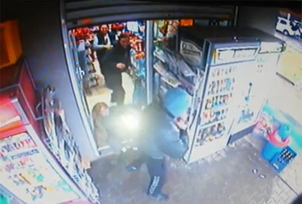 Videvši da radnju neće opljačkati, izleteo iz radnje.