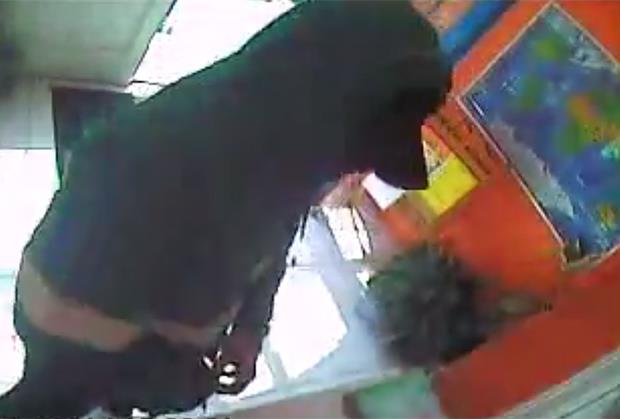 Razbojnik, koji je na glavi imao fantomku, kačket i kapuljaču, je ušao i pošto nikoga nije bilo u menjačnici, naslonio se na pult i stavio ruku u torbicu koju je držao u visini stomaka. U tom trenutku, iz agencije je izašao jedan od zaposlenih.