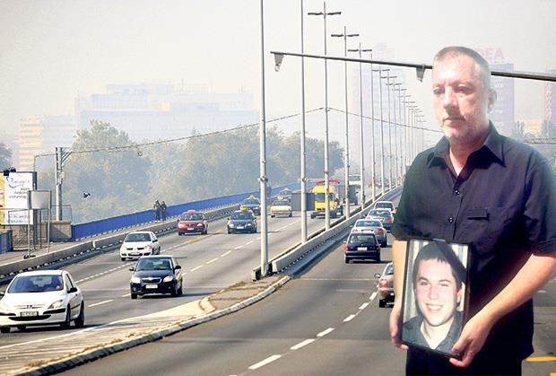 BEOGRAD - Bojan Jovanović, otac Luke Jovanovića koji je pre devet dana teško povređen na Brankovom mostu kada je na njega, dok je pokušao da popravi automobil, naleteo obesni vozač, a nedugo zatim i umro, stajao je danas na mestu nesreće četrdeset minuta držeći sliku stradalog sina.