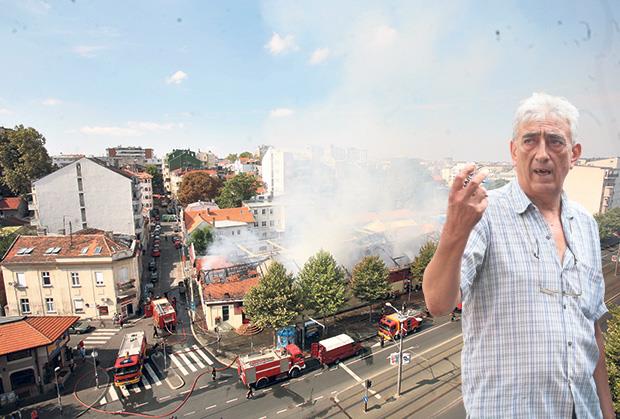 Čuvar Vasko P. rekao da je video kako gori kabl iza jedne tezge, ali da nije uspeo da ugasi plamen, koji je brzo zahvatio krov