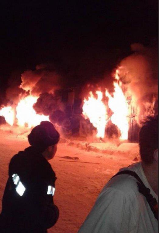 Prema prvim informacijama, požar je izbio u mobilnom naselju kod grada Saleharda, približno 3.000 kilometara od Moskve, u 1:39 posle ponoći. Mediji nezvanično javljaju da je požar izbio u montažnim barakama na gradilištu dok su radnici spavali, a najverovatnije se zapalila prostorija u kojoj su sušili odeću.