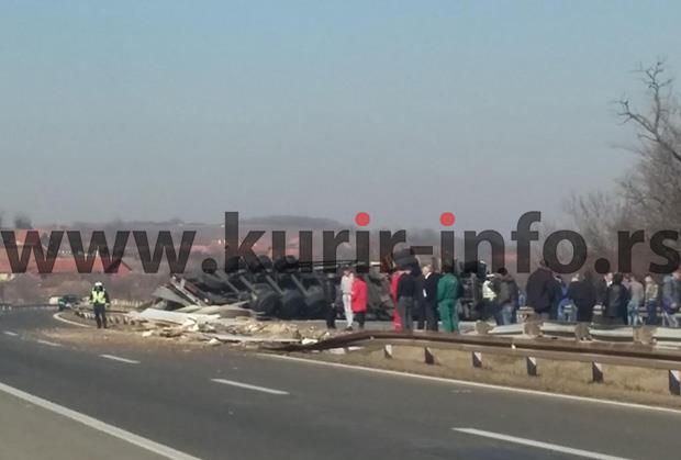 Kamion novosadskih tablica prevrnuo se kod motela Krnjevo i zaustavio saobraćaj na auto-putu u smeru prema Beogradu