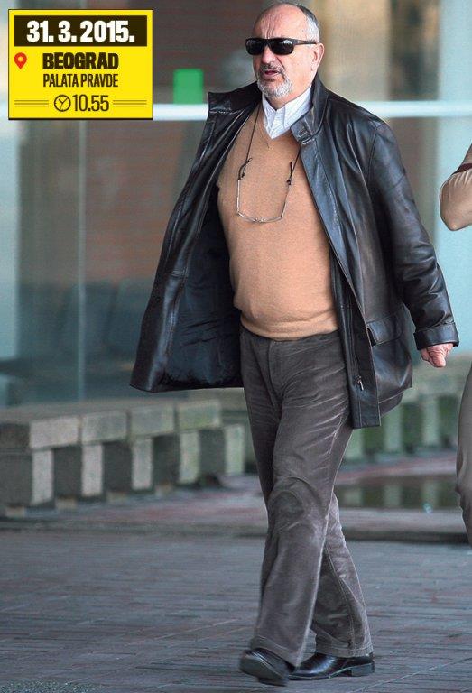 Dragoslav Kosmajac bio je vidno nervozan i ljut kada je primetio foto-reportere ispred Palate pravde.