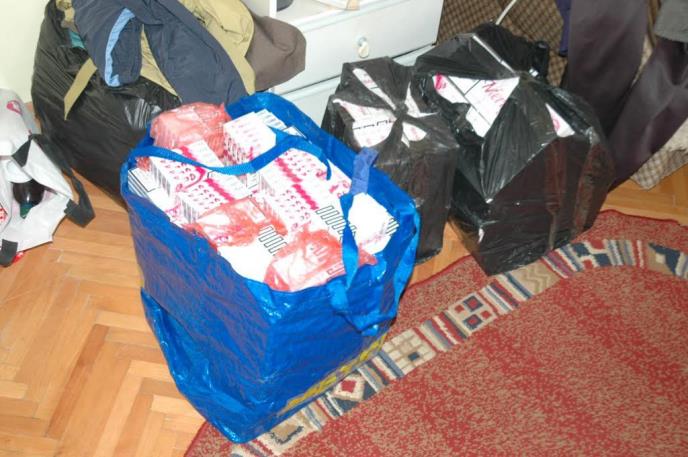 Policija je pretresom porodične kuće osumnjičenog pronašla 2.350 paklica cigareta marke "merilin slim", bez akciznih markica. Sumnja se da su pronađene cigarete bile namenjene daljoj prodaji.