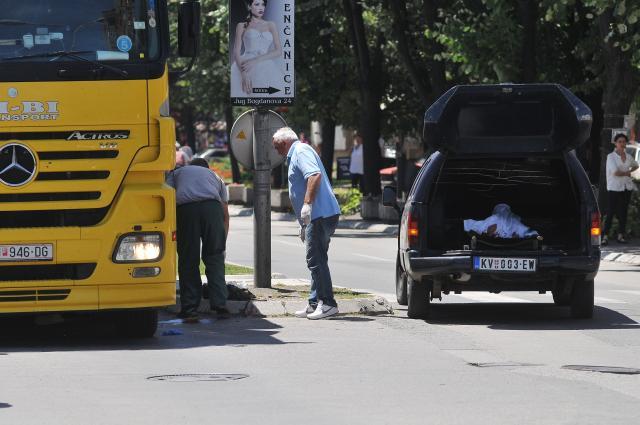KRALJEVO - U saobraćajnoj nesreći koja se dogodila danas oko 11.30 na uglu ulica Vojvode Putnika i Jug Bogdanove u blizini bolnice u Kraljevu, stradala je žena kada je na nju naleteo kamion makedonskih registracionih oznaka.