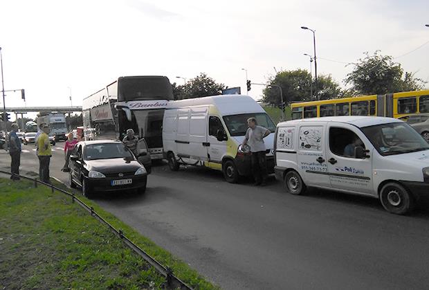 LANČANI SUDAR NA ADI: Sudarili se dva kombija, pikap i autobus