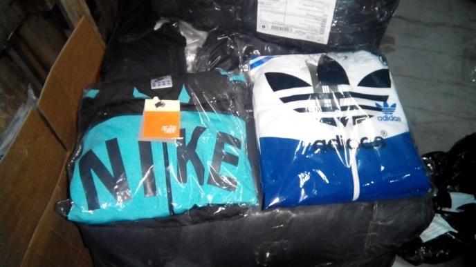 U drugom kombiju brze pošte, beogradskih registarskih oznaka, otkriveno je i 20 kompleta i 100 gornjih i donjih delova trenerki krivotvorenih marki "adidas", "najk" i "versaće". Nešto kasnije, pojavilo se i vozilo "mercedes benz actros", šabačkih registarskih oznaka u kome je pronađeno više od 4.000 pari čarapa marki "adidas" i "najk" za koje se, takođe, sumnja da su krivotvorene.
