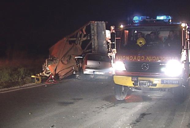 Nesreća se dogodila nedelju oko 2.30 u Stepojevcu, u direktnom sudaru kamiona marke „volvo“ i „fijat punta“. Juče oko podneva još su mogli da se vide tragovi stravičnog sudara. Svuda okolo bili su razbacani delovi kamiona, uništenog automobila, kao i drva koja su ispala iz kamiona.