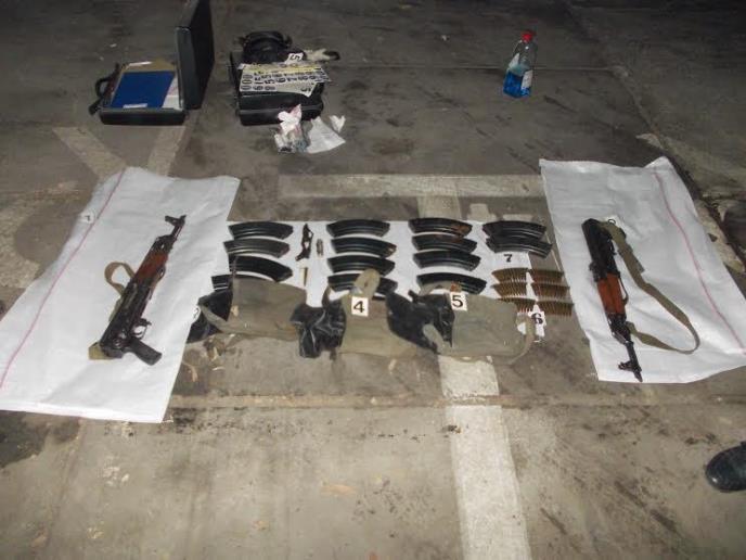 Policija je u putničkom vozilu kojim je upravljao P.T, pronašla dve automatske puške, tri rapa za automatsku pušku sa šesnaest okvira, šezdeset metaka i dva noža na preklop. Pretresom stana pronađen je pištolj i oko 350 metaka različitog kalibra.