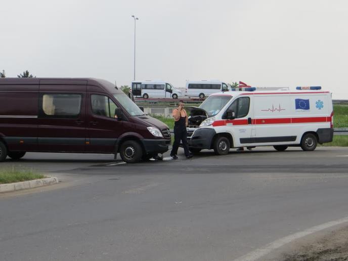 NIŠ - Vozilo aleksinačke Hitne pomoći sudarilo se sa kombijem „mercedes“ kruševačke registracije danas oko 15 časova na ulazu u Niš na Bulevaru 12. februar, kod skretanja za kasarnu „Mija Stanimirović“.