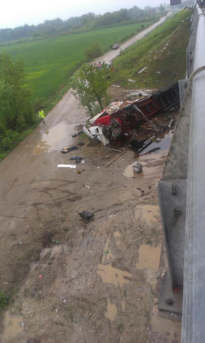 Sudar putničkog vozila i kamiona dogodio se oko 9.15, kada se automobil marke "pežo" kretao suprotnom trakom na autoputu i sudario se sa kamionom.