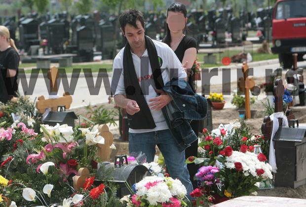 Muškarac u beloj majici nalik dresu - sa brojem 11 i imenom nekadašnjeg reprezentativca u fudbalu Siniše Mihe Mihajlovića - kako priča rodbina, na groblje je došao pre svih...