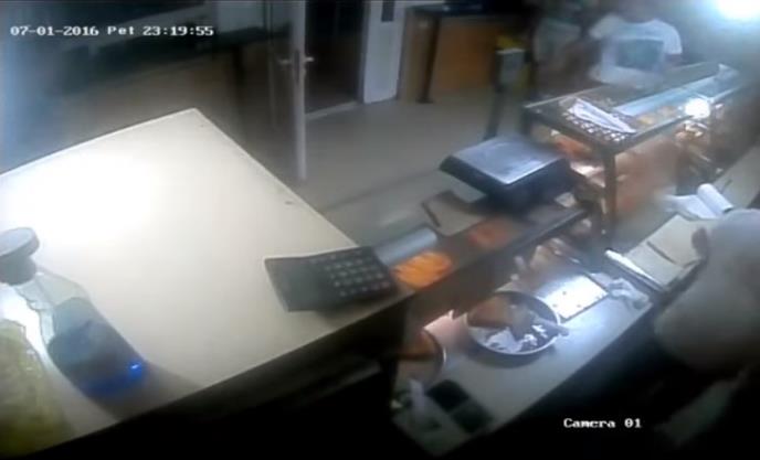 Na snimku se vidi kako su dvojica muškaraca ušla u pekaru i počela da lome dok je jedan ostao ispred.