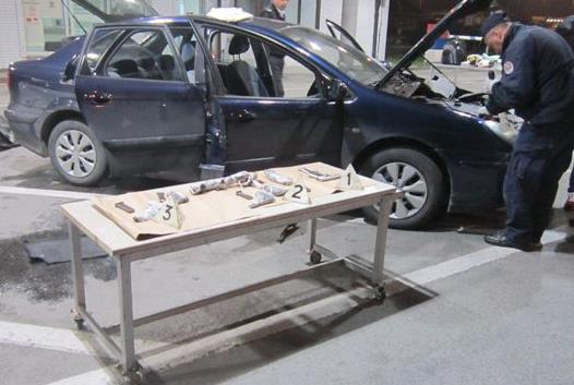Policija je u automobilu „citroen“ srpskih registarskih oznaka pronašla pet pištolja, optički nišan, okvir za automatsku pušku sa 30 komada municije, dva metka za karabin, 12 metaka za pištolj različitog kalibra i dve automatske puške.