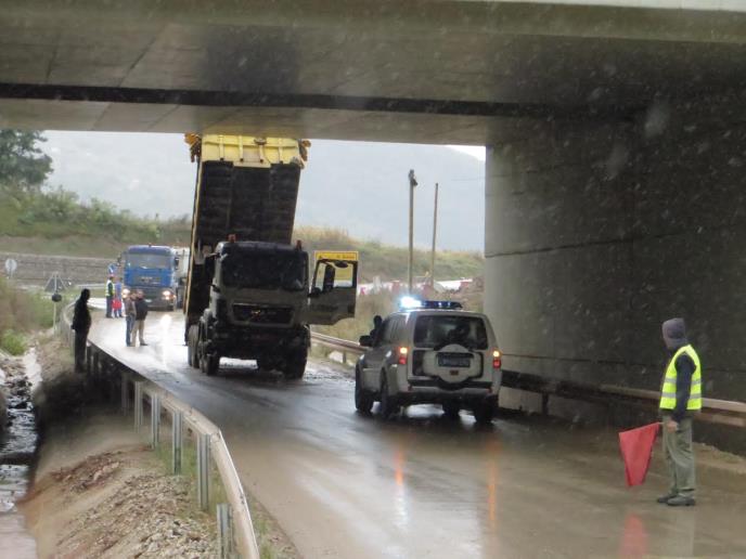 Podignuta prikolica udarila je u nadvožnjak usled čega su vozač i suvozač, koji su se nalazili u kamionu glavama tresnuli u vetrobransko staklo i zadobili povrede zbog kojih su zbrinuti u niškom Urgentnom centru.