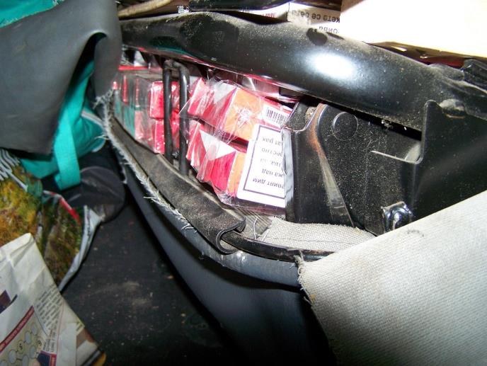 Tokom detaljnog pregleda iz zadnjeg sedišta, naslona za sedište, krova automobila i iz još nekoliko torbi izvadjena je ta količina cigareta sa bugarskim akciznim markicama.