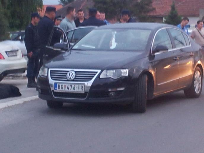 Nesvakidašnji incident dogodio se u petak veče oko 18.30 sati u centru Surčina. Kako saznajemo, dvojica muškaraca dovezli su se crnim „folksvagen pasatom“ beogradske registracije ispred kuće Ljubiše Buhe Čumeta i počeli da vređaju policajce koji ga čuvaju.