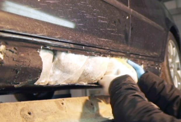 U automobilu "BMV", u jednoj ulici u Zemunu u kojoj živi A.J, u ručno pravljenim bunkerima koji su bili zavareni, policija je pronašla 56 paketa sa 28 kilograma marihuane.