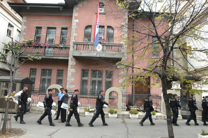 BEOGRAD - Na prostor hrvatske ambasade u Beogradu bačen je kamen koji je oštetio reklamni pano, potvrđeno je večeras Tanjugu u MUP-u Srbije. Incident se dogodio oko 15 časova, a kako je rečeno, počinitelj je muškarac G.S. star 41 godinu, koji je priveden u policiju.