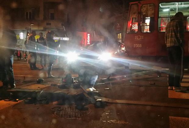 Kako saznajemo, udes se dogodio kad je putničko vozilo udarilo u samafor, nakon čega je na njega naleteo tramvaj.