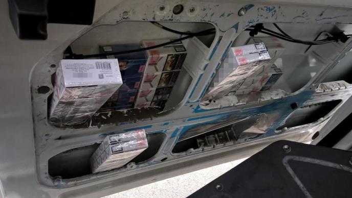 Na samom početku pregleda carinici su u fabričkim šupljinama bočnih stranica i vrata kombija pronašli sakrivene cigarete.
