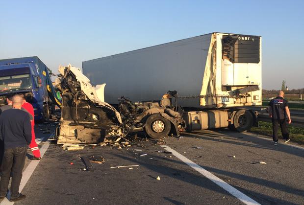 Do nesreće je došlo kada je kamion koji se kretao autoputem naleteo na drugi kamion koji je stajao u zaustavnoj traci.Tom prilikom je povređen vozač koji je u trenutku sudara menjao gumu na kamionu.