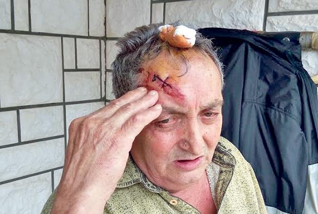 Mandžulj je dobio više udarca u glavu, a kako nam je objasnio, najviše ga bole dve, i to jedna na temenu i druga na čelu, gde su mu vidljive posekotine.