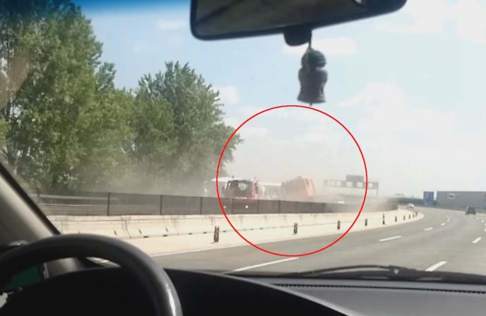 Kako pokazuje snimak napravljen iz automobila koji se kretao suprotnom trakom auto-puta u Mađarskoj, autobus prevoznika "Eurolin" iz Paraćina kojim je upravljao vozač Siniša S. žestoko se zakucao u vozilo za održavanje puta.