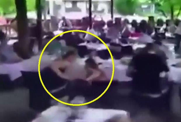 One su, kako se vidi u snimku, odmah čučnule i spustile glave ispod stola, čim su videle policiju, što su uradili i muškarci za stolom pre nego što su uhapšeni.