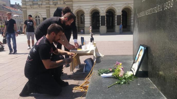 Na Trgu Slobode okupili su se drugari, prijatelji, poštovaoci i mnogobrojni građani, kako bi odali minutom ćutanja počast Jojiću, zapalili sveću i položili cveće.