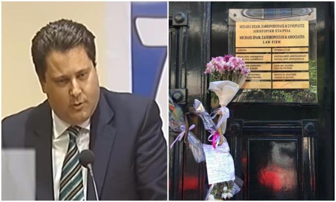 Ispred kancelarije jednog od najeminentnijih atinskih advokata Mihalis Zafiropulos, koji je bio preporučen za odbranu Srba optuženih za ubistvo američkog državljanina na grčkom ostrvu Zakintos, već dva dana se okupljaju kolege, prijatelji, ali i slučajni prolaznici koji iskazuju poštovanje prema ubijenom pravniku.