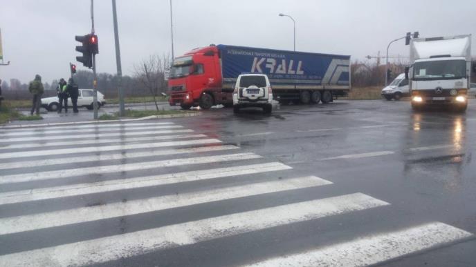 Kako su za Kurir rekli očevici ove nezgode, kombi se na raskrsnici zakucao u šleper.