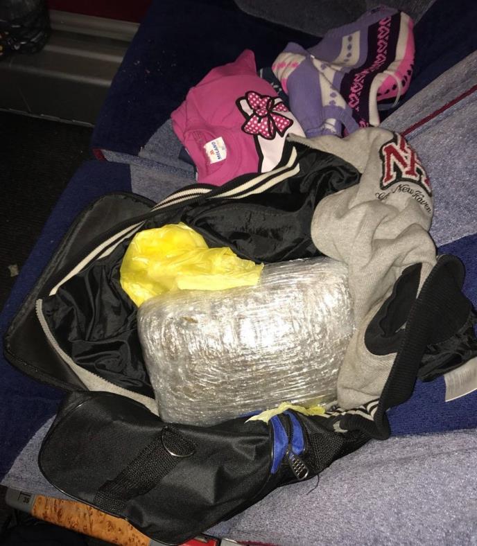 Ubrzo je iznad sedišta broj 35-36, na kojima niko nije sedeo, u torbi koja se nalazila na polici za odlaganje ručnog prtljaga, otkriven paket u kome se nalazilo kilogram marihuane.