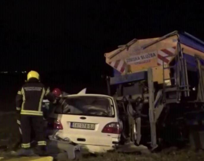 On je najverovatnije velikom brzinom sustigao i udario u zadnji deo kamiona Beogradputa, koji je bio natovaren solju.