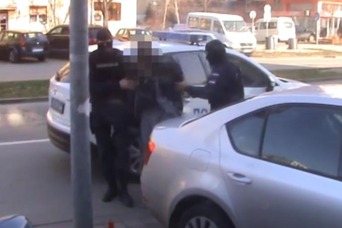 Na MUP-ovom snimku se vidi kako policajci razvaljuju vrata, upadaju u stan i hapse pljaškaša, a potom ga sprovode u pritvor.