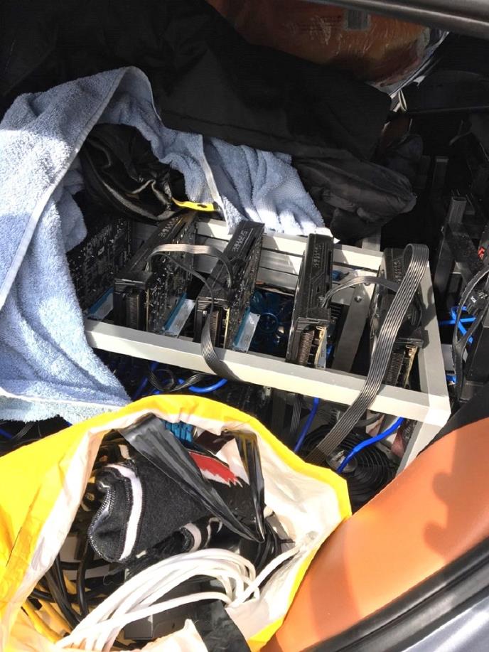 Iako je rekao da nema ništa da prijavi za carinjenje, carinici su detaljno pregledali vozilo. Tom prilikom pronašli su 6 računarskih sklopova za „rudarenje“ kriptovalute čija vrednost je procenjena na oko 8.000 evra. Računarske komponente su bile zakamuflirane garderobom na zadnjem sedištu, kao i u prtljažniku automobila.