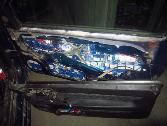 U saopštenju se naglašava da je u raznim fabričkim šupljinama automobila bilo sakriveno 58 litara 96% etil-alkohola, oko 300 paklica cigareta sa akciznim markicama Srbije, kao i nepunih 5 kilograma rezanog duvana.