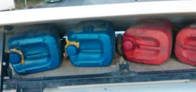 Međutim, prilikom kontrole u boksu sa desne strane prikolice pronađena su 2 bela kanistera sa po 25 litara nafte, a u luferu iznad kabine kamiona otkriveno je još 4 crvena i plava kanistera sa po 20 litara. Vozač je carinicima rekao da za naftu koju je kupio u Rusiji nema račun.