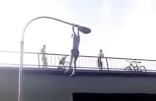 Tinejdžer je, kao što se vidi na snimku koji se pojavio na društvenim mrežama, visio na banderi sa ciljem da sa visine od pet metara skoči u vodu.