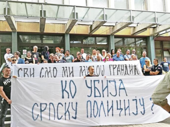 Prijatelji i kolege policajca Miloša Grandića (34) iz Novog Sada, koji je nepravosnažno osuđen na tri godine zatvora zbog pokušaja ubistva Dejana Makanića, okupili su se danas ispred novosadskog Višeg suda kako bi izrazili nezadovoljstvo zbog te presude.