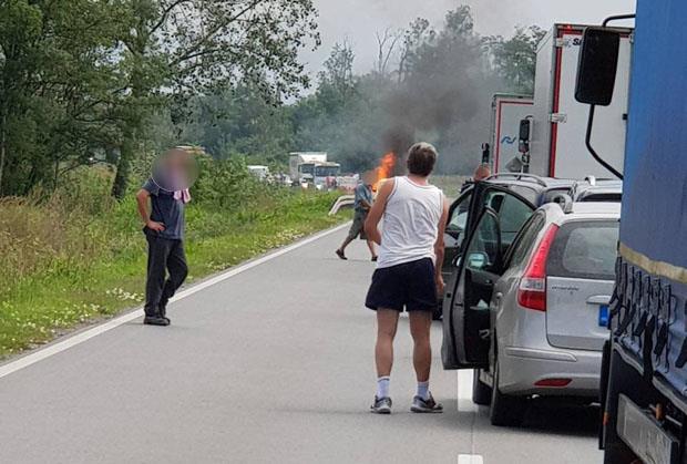 Na Ibarskoj magistrali danas se zapalio automobil koji je napravio priličan haos na putu.
