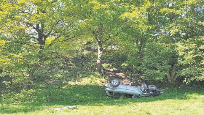 Od posledica udara i sletanja, prednji kraj i krov vozila potpuno su uništeni.