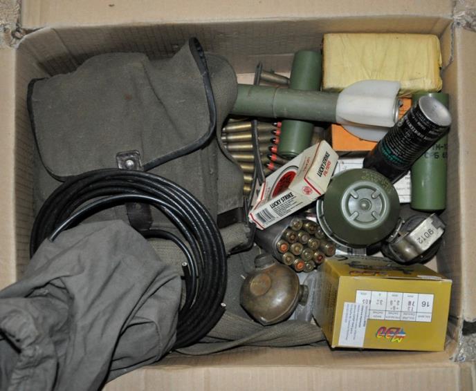 Policija je prilikom pretresa stana i drugih prostorija koje D.B. koristi pronašla automatsku pušku sa četiri okvira, dva tromblonska nastavka, skraćenu pušku, pištolj sa okvirom, tromblonsku minu, dve ručne bombe, tri eksploziva, tri komada sporogorećeg štapina i četiri električne inicijalne kapisle.