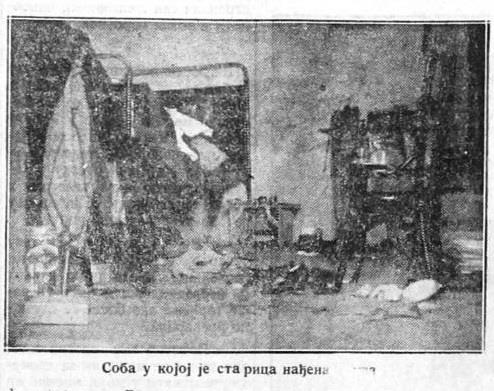 Nesrećna žena pronađena je zadavljena u svom krevetu, ukočenih ruku, otvorenih usta i iskolačenih očiju, a na vratu su joj bili vidljivi podlivi i otisci šaka. Zločin je otkrila žrtvina kuma, koja je po dogovoru došla kod nje u stan kako bi joj pomogla da se spakuje jer je planirala da otputuje u Niš. Pošto starica nije otvarala vrata, kuma je pozvala gazdaricu kuće, koja je kroz staklo i zavesu na vratima videla leš žene u krevetu.