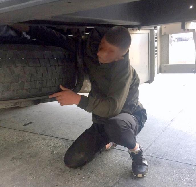 "Ilegalac, za koga se ispostavilo da ima putne isprave Albanije, putovao je ka Zapadu krijući se na rezervnom točku u polušasiji šlepera", piše u saopštenju.