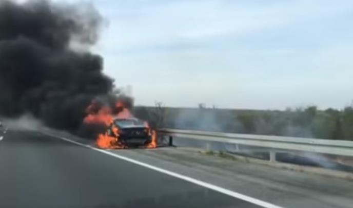 Automobil marke "BMW" potpuno izgoreo je na auto-putu Beograd - Šid u blizini Šimanovaca.